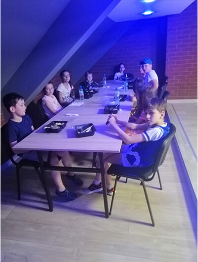 14:00 - zakończenie półkolonii, gry i zabawy ruchowe w języku angielskim z wykorzystaniem robota EMYSA